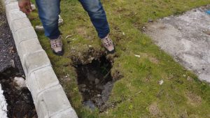 Di lokasi parkiran, tumpukan rumput kering berserak, ditambah material sisa bangunan ada yang menumpuk bahkan menutupi rambu-rambu yang telah dibuat di lantai lokasi parkir.