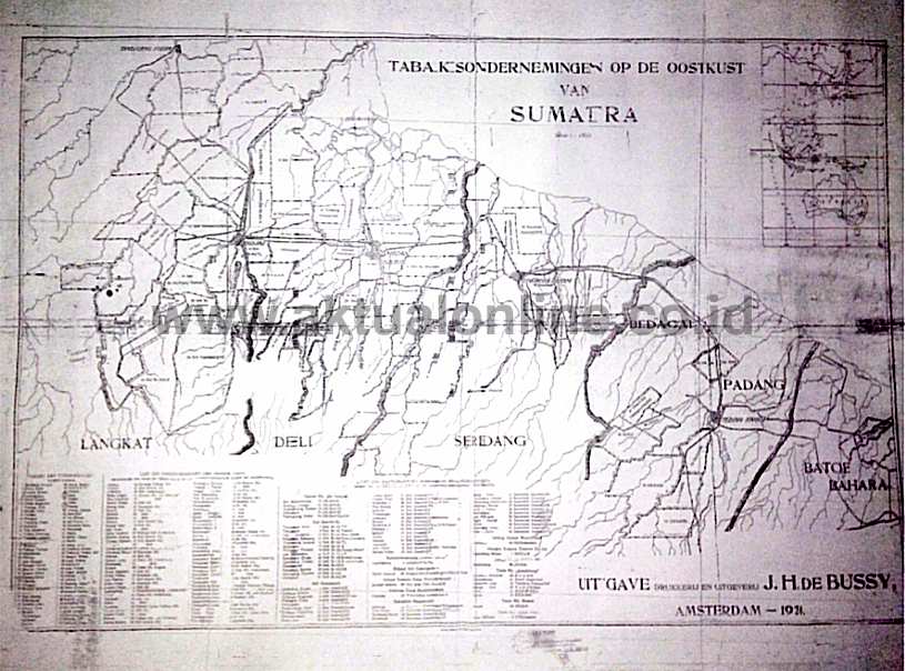 Melalui disertasi milik T. Prasetiyo dari Universitas Muhammadiyah Sumatera Utara berjudul strategi komunikasi organisasi Arih Ersada dalam meningkatkan solidaritas masyarakat terdampak, diungkap bahwa tepatnya tahun 1924 Belanda pernah menerbitkan sebuah peta bernama Tabaksondernemingen Op De Oostkust yang dalam bahasa Indonesia berarti perusahaan Tembakau di pantai Timur Sumatera yang diterbitkan oleh percetakan J.H. De Bussy di Amsterdam.