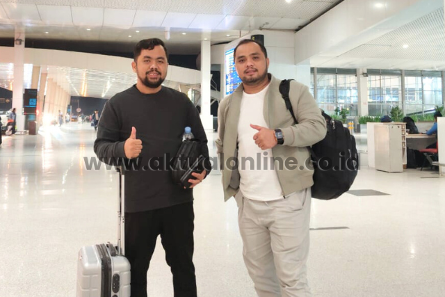 Pengusaha muda Fadhli dan Aktivis Fahrul Rozi Harahap (kiri ke kanan) saat di Bandara Kualanamu usai membuat laporan dugaan korupsi di Labura. (Foto: Ist/Aktual Online)