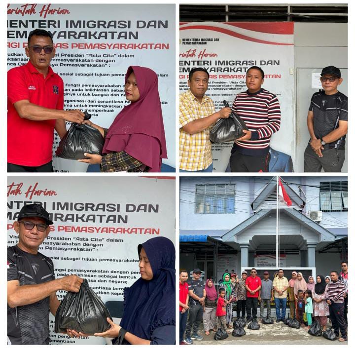 Rumah Tahanan Negara (Rutan) Kelas II B Sibuhuan Kanwil Imigrasi dan Permasyarakatan Sumut, menyalurkan bantuan sosial kepada keluarga warga binaan pemasyarakatan (WBP) kurang mampu berupa paket sembako, Jumat (21/3/2025).