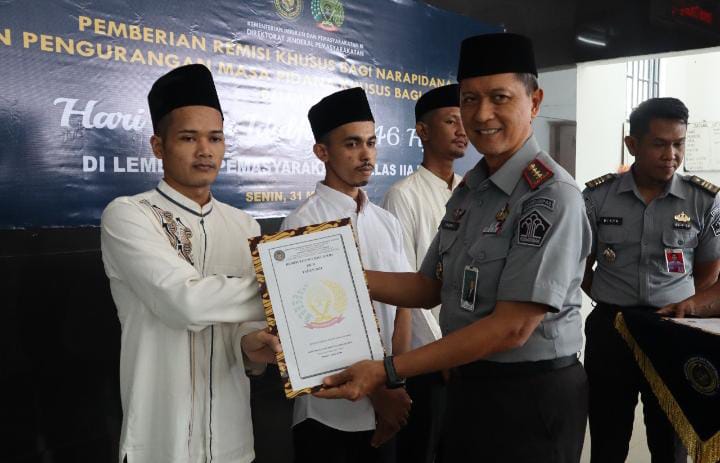 “Pemberian Remisi Khusus Hari Raya Idul Fitri 1446 H diharapkan memotivasi Warga Binaan untuk mencapai penyadaran diri yang tercermin dari sikap dan perilaku sehari-hari, serta selalu meningkatkan optimisme dalam menjalani pidana hilang kemerdekaan yang sedang dijalani,” ucapnya.