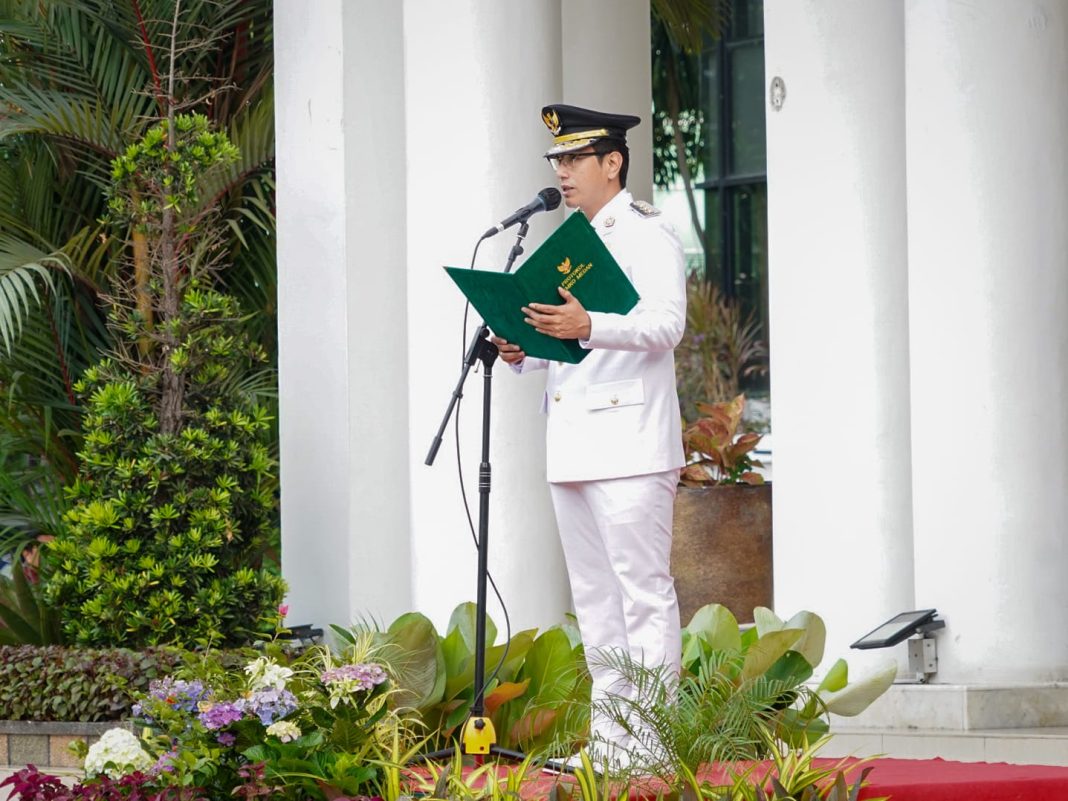 Wali Kota Medan Rico Tri Putra Bayu Waas memimpin upacara Peringatan Hari Otonomi Daerah XXIX, Jumat (25/4/2025). Dalam upacara yang digelar di halaman depan balai kota itu, Rico Waas menyampaikan sinergi pusat dan daerah merupakan sebuah keharusan untuk mencapai cita-cita bangsa sebagaimana telah dituangkan dalam konstitusi.
