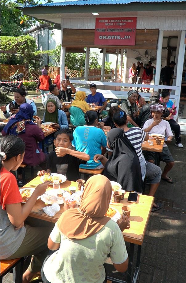 AKTUALONLINE.co.id MEDAN|||Rumah Tahanan Negara (Rutan) Kelas I Medan kanwil Ditjenpas Sumut menggelar kegiatan makan gratis bagi masyarakat sekitar dan yang melintas di depan Rutan. Jumat (25/04|2025》..