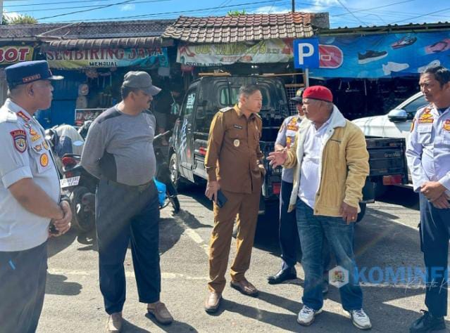 Wakil Bupati Karo, Komando Tarigan, S.P., memantau langsung uji coba manajemen rekayasa lalu lintas dan sistem parkir di Jalan Letnan Abdul Kadir dan Jalan Kapt.Bangsi Sembiring, Kabanjahe, pada Selasa (29/4/2025).
