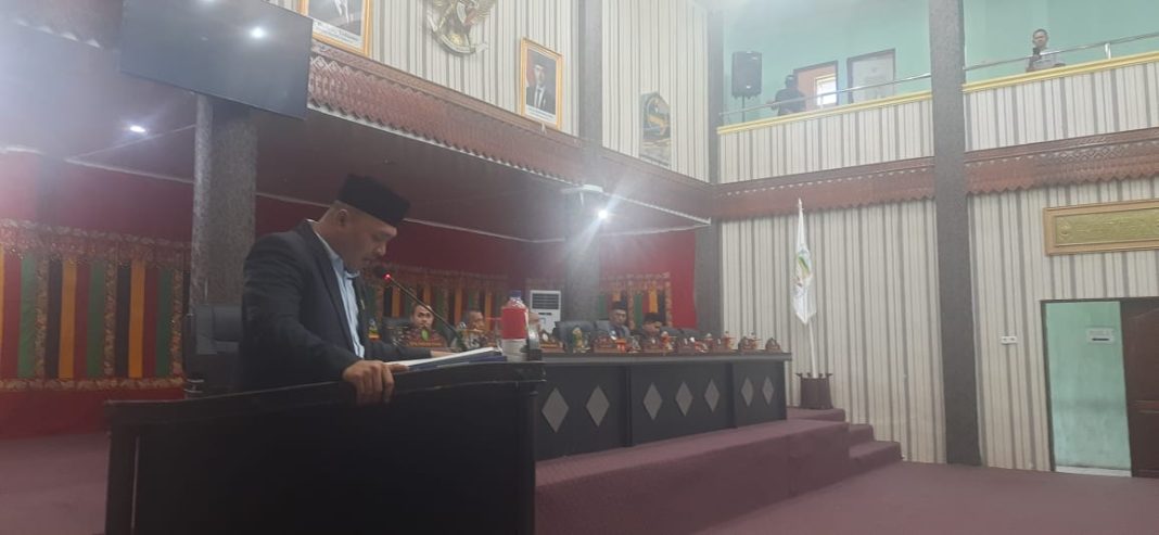 Ketua Pansus LKPj, Desra Novianto membacakan rekomendasi DPRK dan menyampaikan sejumlah catatan penting untuk menjadi perhatian.