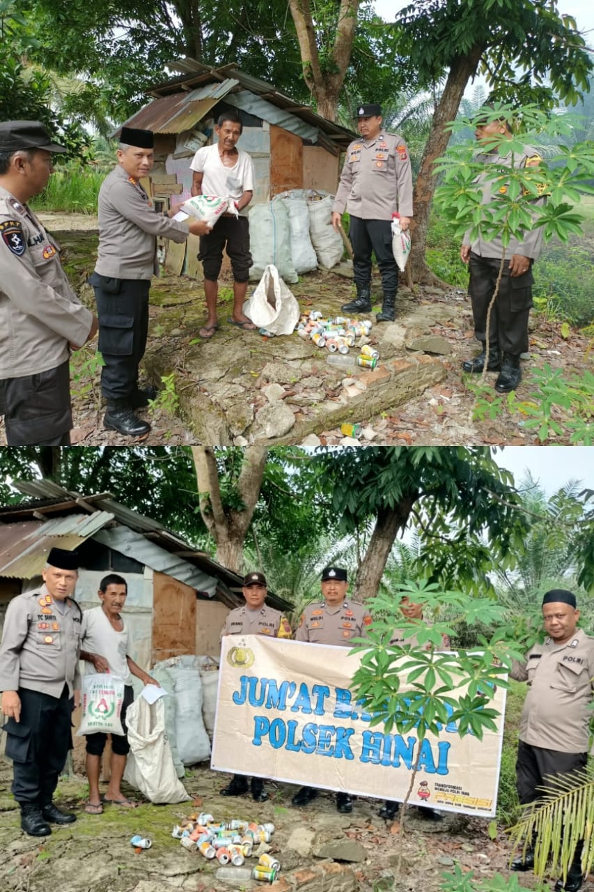 Polsek Hinai melakukan kegiatan jum’at berkah dengan memberikan Bansos, Kapolsek Hinai AKP T. C. Sihite, SH, Bersama Kanit Intelkam, Bhabinkamtibmas di Desa Suka Damai Kecamatan Hinai Kabupaten Langkat. Jum’at (16/05/2025.)