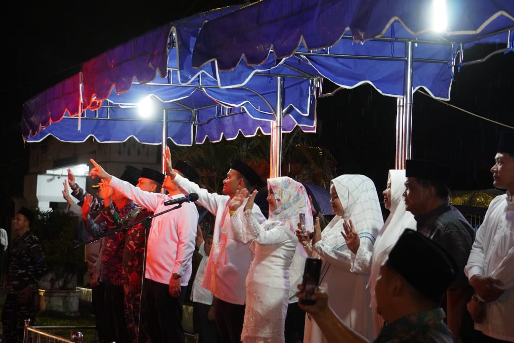 Wali Kota Tanjungbalai Mahyaruddin Salim didampingi Ketua TP-PKK Ny Mashandayani Mahyaruddin bersama Wakil Wali Kota Muhammad Fadly Abdina serta Forkopimda melepas pawai takbir dalam memeriahkan malam menyambut Idul Adha 1446 Hijriah, Kamis (5/6/2025). Pawai takbir ini adalah rangkaian gema takbir Idul Adha 1446 Hijriah.