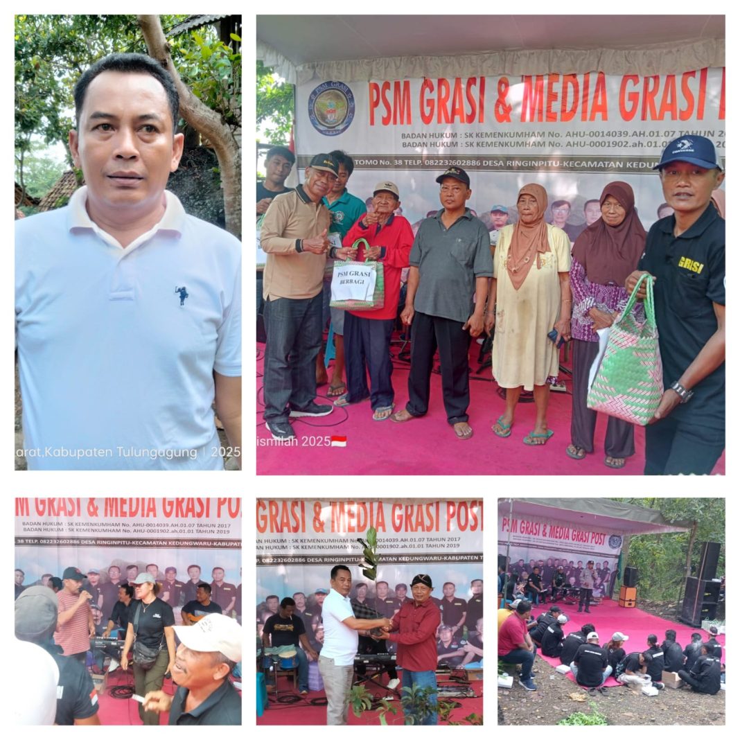 Organisasi sosial PSM GRASI kembali menunjukkan komitmennya terhadap kesejahteraan masyarakat dengan menggelar bakti sosial (baksos) dan bantuan sosial (bansos) di kawasan wisata Gunung Budeg, Kecamatan Campur Darat, Tulungagung, pada Minggu (15/6/2025). Kegiatan ini bertujuan untuk membantu masyarakat kurang mampu sekaligus mendukung pelestarian lingkungan di destinasi wisata lokal.