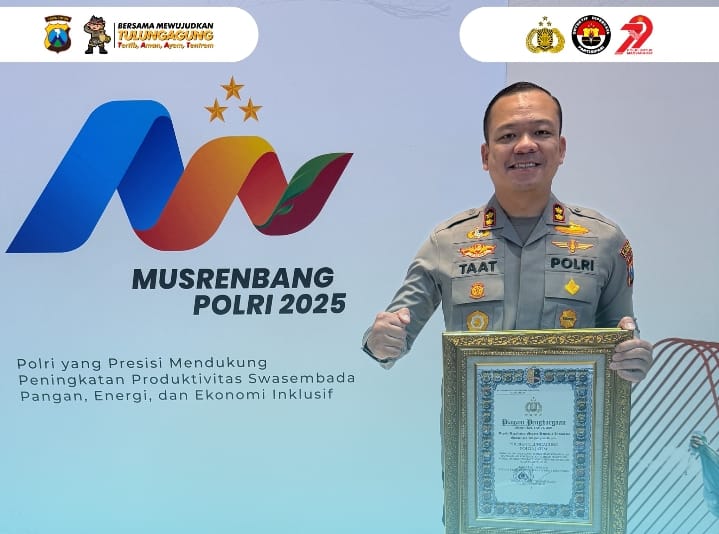 Polres Tulungagung kembali menorehkan prestasi membanggakan di tingkat nasional. Dalam acara Musyawarah Perencanaan Pembangunan (Musrenbang) Polri Tahun 2025 yang digelar di Auditorium STIK-PTIK, Jakarta, Kamis (19/06/2025). Kapolres Tulungagung AKBP Muhammad Taat Resdi menerima langsung penghargaan dari Kapolri Jenderal Polisi Drs. Listyo Sigit Prabowo, M.Si.