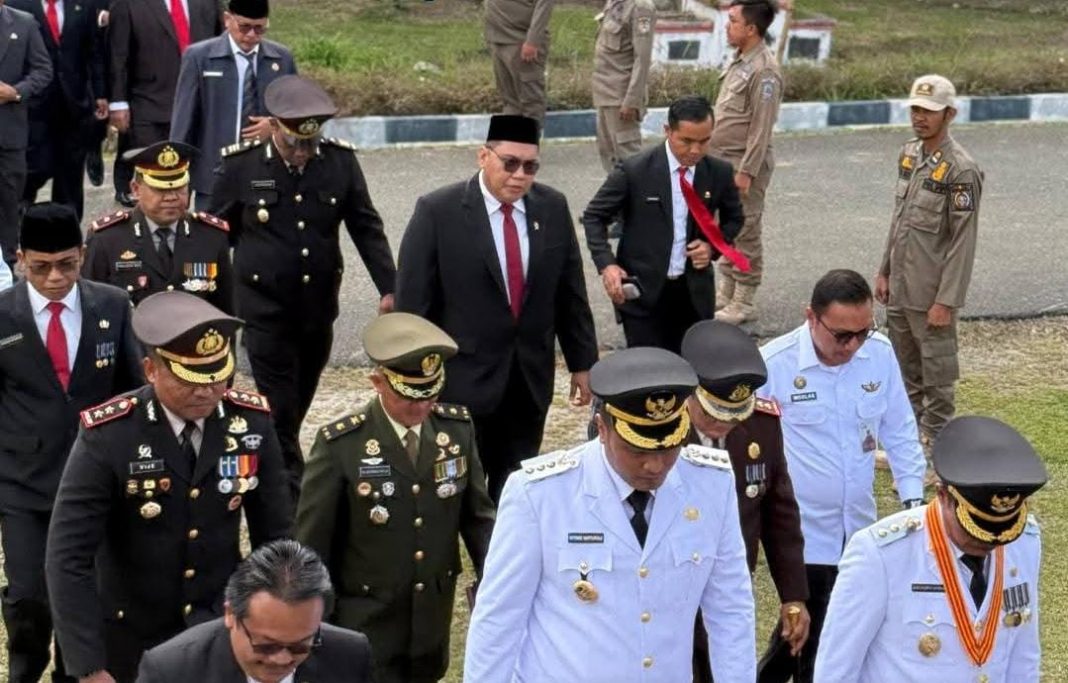 Bupati Toba, Effendi Napitupulu, bertindak sebagai inspektur upacara. Sejumlah pejabat hadir, antara lain Wakil Bupati Audi Murphy Sitorus, Ketua DPRD Franshendrik Tambunan, Sekda Augus Sitorus, Kapolres AKBP V.J. Parapaga, Kajari Dohar Nainggolan, serta jajaran Forkopimda, pimpinan OPD, BUMN/BUMD, TNI, Polri, pelajar, dan tokoh masyarakat Kabupaten Toba.