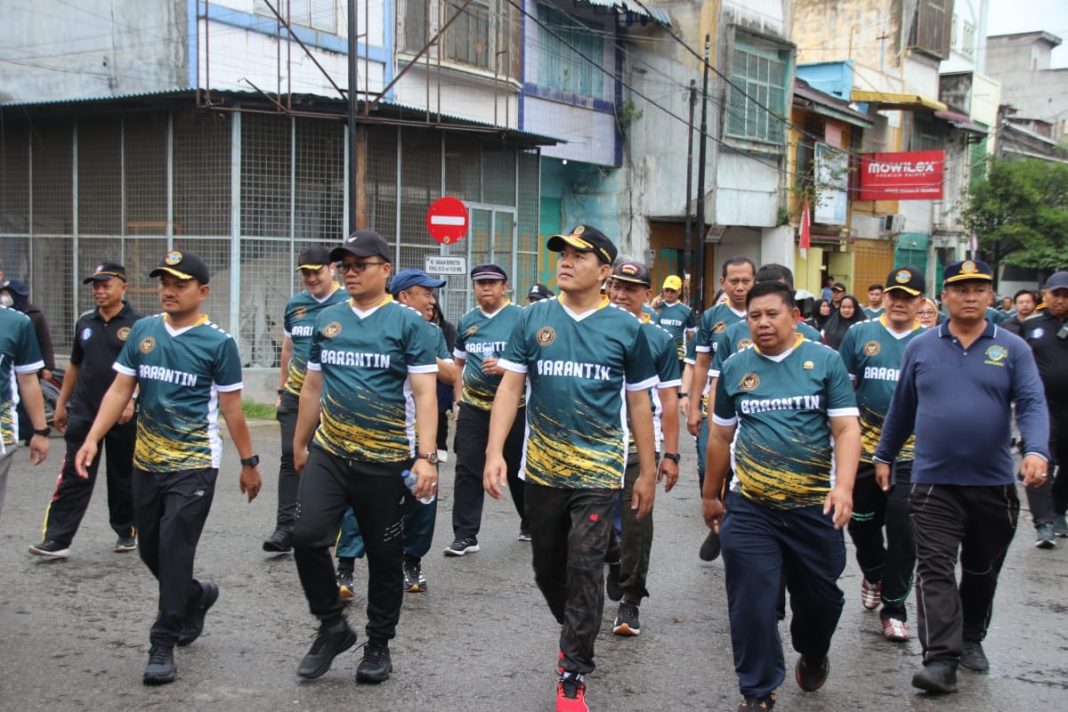 Wali Kota Tanjungbalai Mahyaruddin Salim didampingi Ketua TP-PKK Ny Mashandayani Mahyaruddin bersama Wakil Wali Kota Muhammad Fadly Abdina melakukan jalan sehat dan senam pagi bersama yang dipimpin oleh Kepala Badan Karantina Pertanian Sahat Manaor Panggabean yang dilaksanakan di alun alun Sultan Abdul Jalil Rahmadsyah, Kamis (21/8/2025)