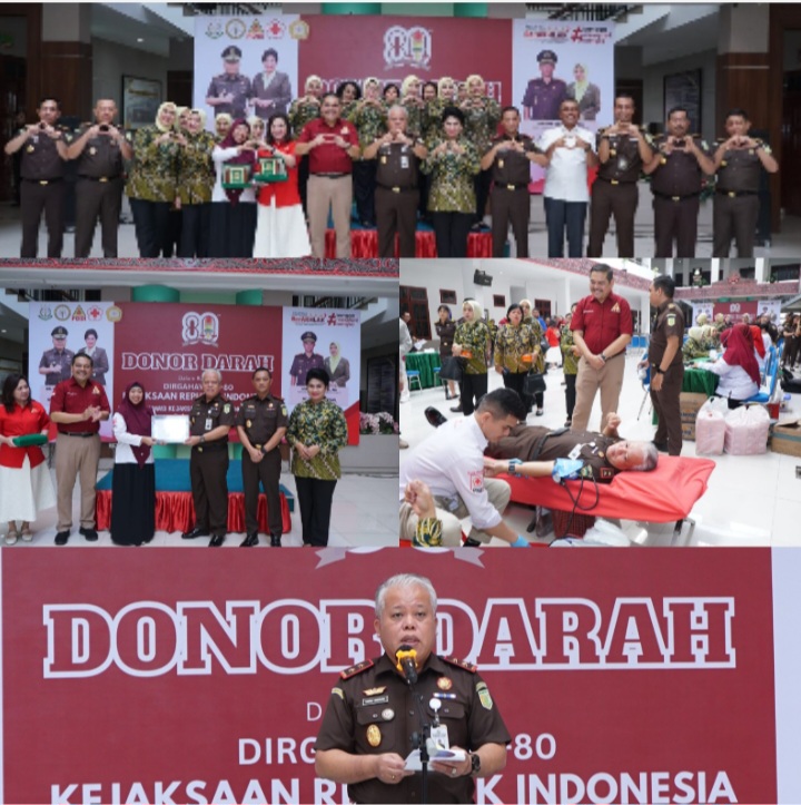 AKTUALONLINE.co.id MEDAN|||Dalam rangka menyambut hari lahir (HARLAH) Kejaksaan R.I ke-80 tahun 2025, Kejaksaan Tinggi Sumatera Utara melaksanakan bhakti sosial dengan menggelar donor darah bagi seluruh pegawai Kejaksaan Tinggi Sumatera Utara yang dilaksanakan di Adhyaksa Hall lantai I Kejati Sumut Jalan Jend Besar AH Nasution No.1C Medan, Senin (25/8/2025)