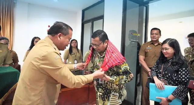 Bupati Karo, Brigjen Pol (Purn) Dr. dr. Antonius Ginting, Sp OG., M.Kes., didampingi Sekda Kab.Karo, Gelora Kurnia Putra Ginting, S.STP., MM., menyambut kunjungan kerja Kepala BPK RI perwakilan Provinsi Sumatera Utara, Paula Henry Simatupang, S.E., M.Si., Ak, CA, CFra, CPA (Aust), CSFA, ACPA, GRCP, GRCA, ERMAP., dalam rangka audit kinerja ketahanan pangan Kabupaten Karo Tahun 2025 di Aula Kantor Bupati Karo pada Senin (15/9/2025).