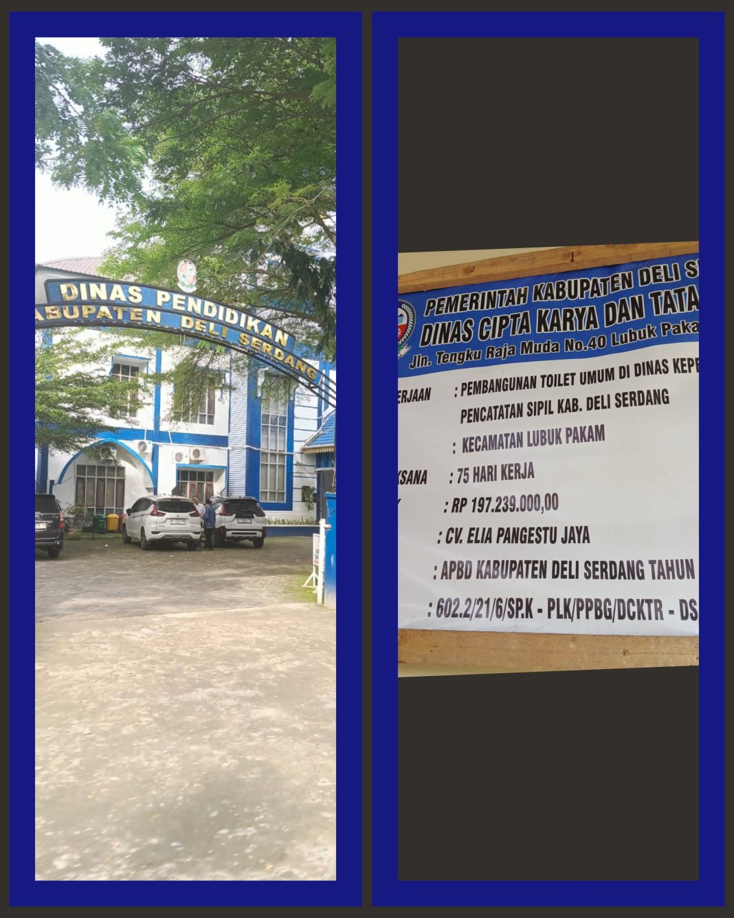 Pasalnya, proyek anggaran 100 milyar yang dialokasikan melalui APBD Deli Serdang 24 Milyar digunakan Pembuatan MCK yang pekerjaan dilaksanakan oleh orang dinas dengan meminjam perusahaan orang lain dan ironisnya lagi, setiap pekerjaan pemborong wajib menyerahkan duit setoran 15 hingga 22 persen kepada oknum pejabat tersebut.