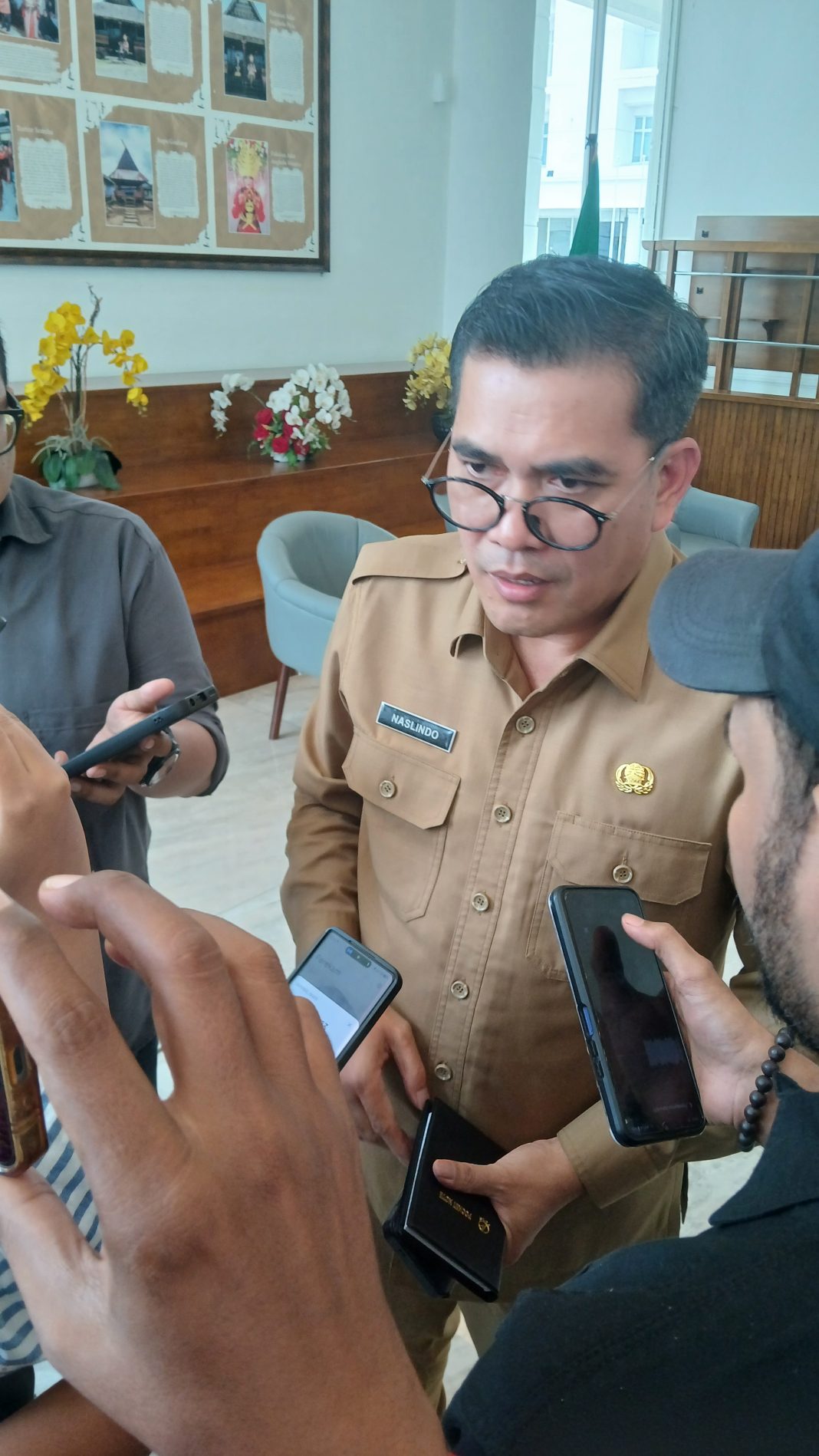 Foto : Kadis Koperasi dan UKM Sumut Naslindo Sirait. Saat dimintai komentarnya oleh sejumlah wartawan di Pemprov Sumut// AktualOnline.co.id