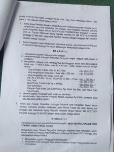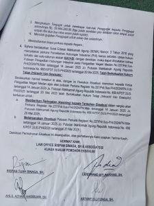 Lebih lanjut Rispan Tuah Sinaga S.H, menerangkan bahwa menindak lanjuti surat kami terdahulu tertanggal 14 Januari 2025 untuk dan atas nama klien kami Tigor Leonardo Napitupulu, sebagaimana putusan Pengadilan Hubungan Industrial pada PN Medan dengan register perkara nomor: 227/Pdt.Sus-PHI/2024/PN.Mdn Jo. Putusan Mahkamah Agung RI Nomor: