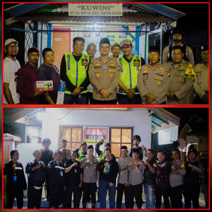 AKTUALONLINE.coid – MANDAU ||| Kapolres Bengkalis, AKBP Budi Setiawan, S.I.K., M.I.K., bersama jajaran Polres Bengkalis, melaksanakan kunjungan dan patroli ke Satkamling “Kuwini” RT 01 RW 04 Kelurahan Balik Alam dan Pos Siskamling RT 02 RW 20 Jalan Tegal Sari Kelurahan Air Jamban, Duri, pada Sabtu malam, 11 Oktober 2025. Kegiatan ini merupakan bagian dari upaya berkelanjutan Polres Bengkalis dalam meningkatkan keamanan dan ketertiban masyarakat.