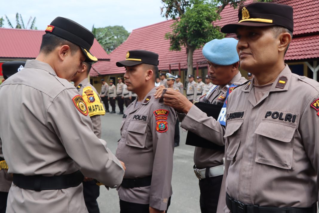 Kapolres Binjai Akbp Bambang C. Utomo, S.H., S.I.K., M.Si., mengukuhkan Nomenklatur Pamapta SKPT Polres Binjai dilapangan apel polres Binjai, jalan Sultan Hasanuddin No.1 Binjai., Jumat (17/10/25).
