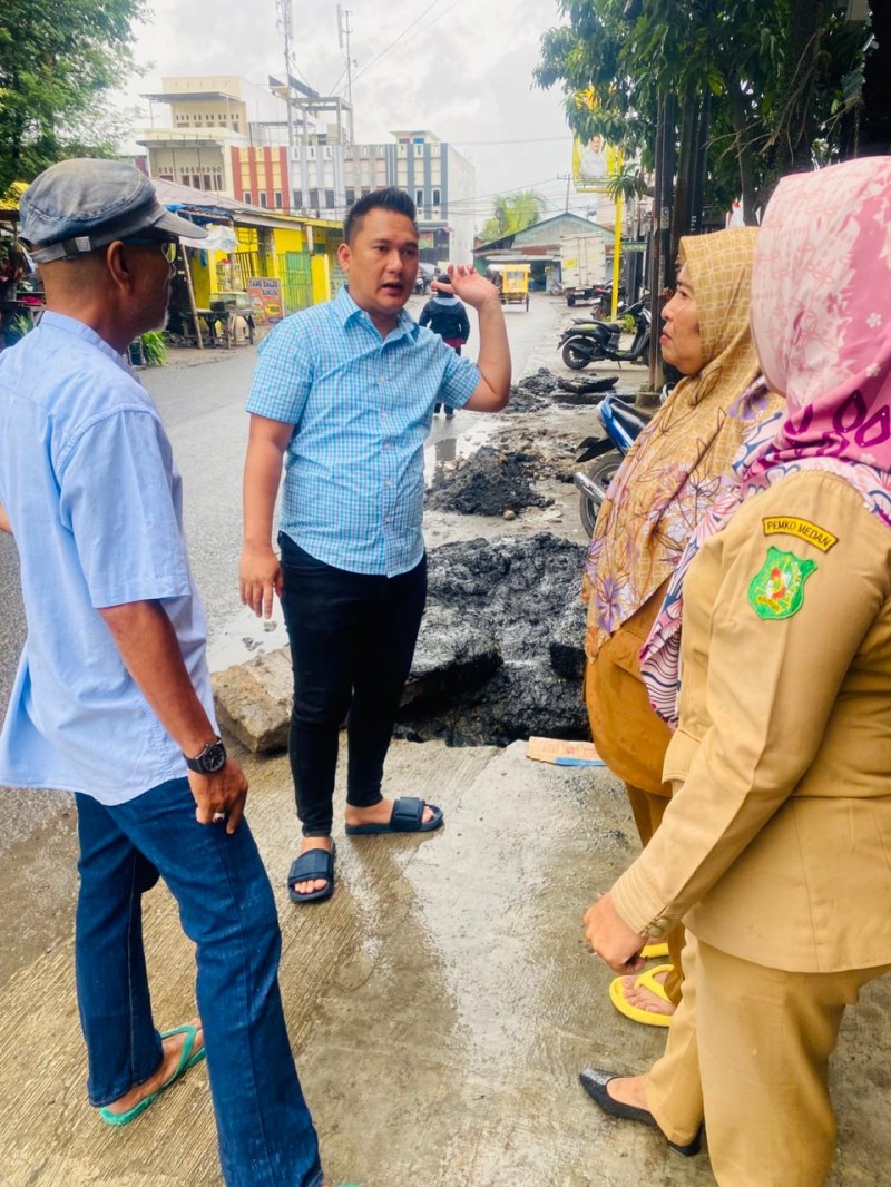 Ketua Komisi I DPRD Medan Reza Pahlevi Lubis S Kom turun langsung dampingi Petugas Penanganan Prasarana dan Sarana Umum (P3SU) membersihkan drainase/gorong gorong di Jl Kelambir 5, Kelurahan Tanjung Gusta, Kecamatan Medan Helvetia, Senin (20/10/2025) pagi.Layanan Perizinan.