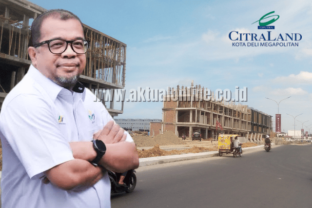 SEVP PTPN I Regional I Ganda Wiatmaja dengan latar belakang proyek Deli Megapolitan Sampali. (Foto: Ist/Aktual Online)