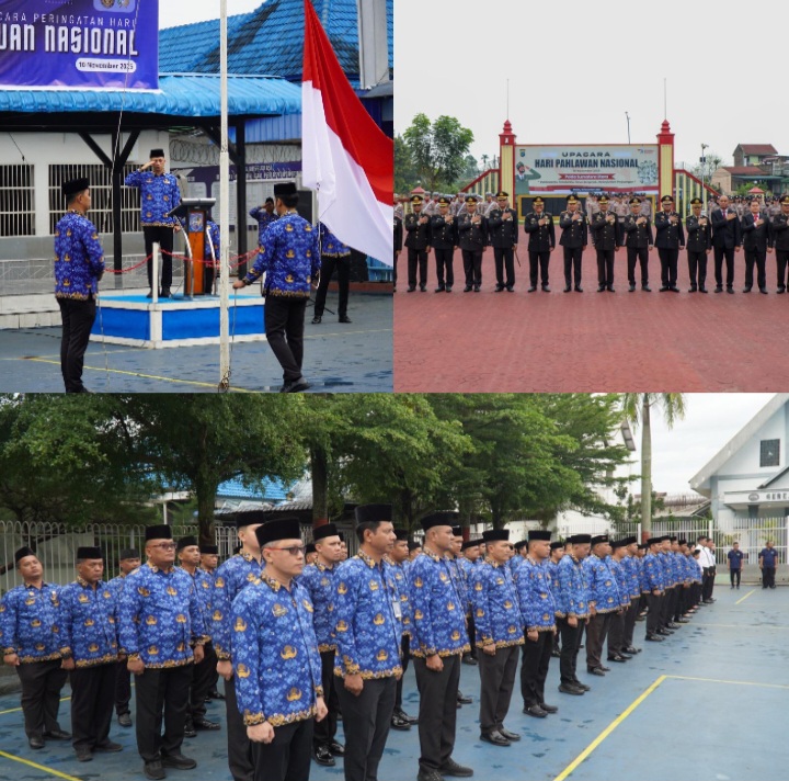 AKTUALONLINE.co.id MEDAN|||Rutan Kelas I Medan Kanwil Ditjenpas Sumut melaksanakan upacara peringatan Hari Pahlawan Tahun 2025 dengan khidmat di lapangan upacara Rutan, Senin (10/11).