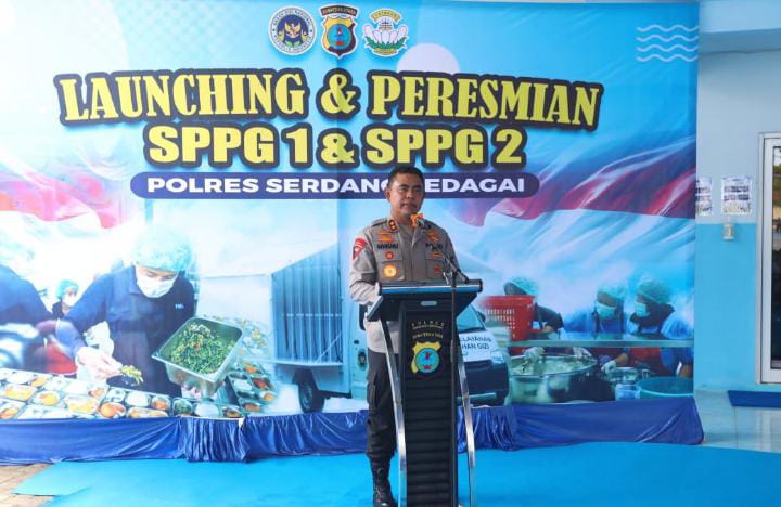 Kapolda Sumatera Utara, Irjen Pol Whisnu Hermawan Februanto, S.I.K., M.H., meresmikan dua Satuan Pelayanan Pemenuhan Gizi (SPPG) Polres Serdang Bedagai yang berlokasi di Sei Rampah dan Sei Bamban, pada Kamis (13/11/2025).