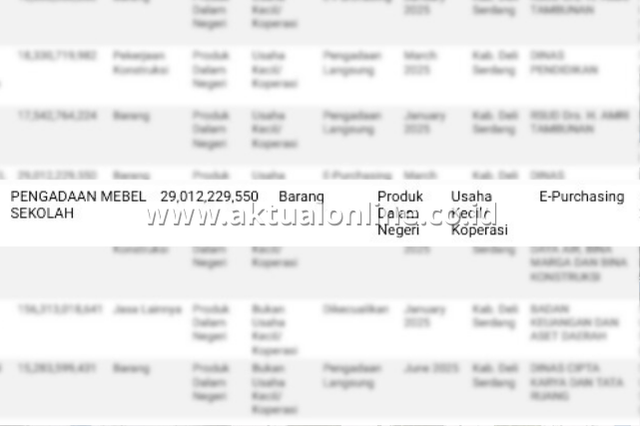 Potongan informasi soal penawaran proyek mobiler sekolah Disdik Deli Serdang.(Foto: Ist/Aktual Online)