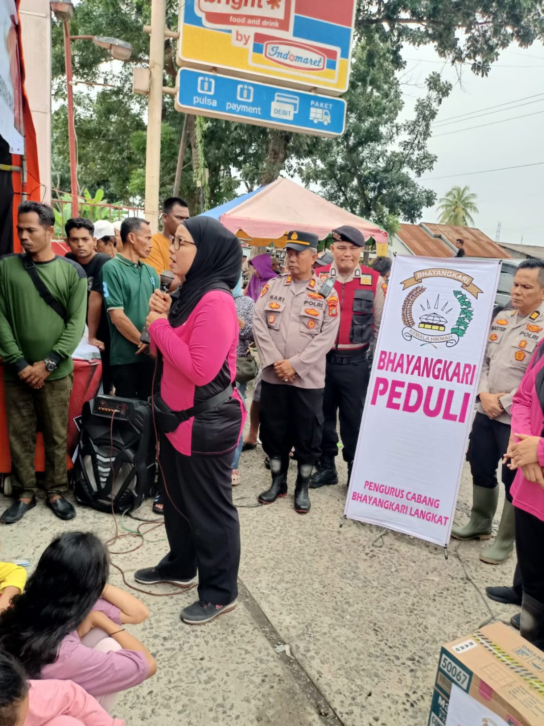 Ketua Bhayangkari Cabang Langkat Salurkan Bantuan untuk Pengungsi Banjir di Hinai