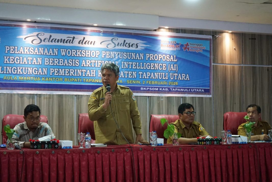 AKTUALONLINE.co.id – TAPUT ||| Pemerintah Kabupaten Tapanuli Utara terus mendorong percepatan transformasi digital di lingkungan birokrasi. Upaya tersebut diwujudkan melalui Workshop Penyusunan Proposal Kegiatan Berbasis Artificial Intelligence (AI) atau kecerdasan buatan yang dibuka secara resmi oleh Wakil Bupati Tapanuli Utara, Dr. Deni Parlindungan Lumbantoruan, M.Eng.