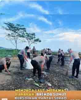 Personel Kompi 4 Batalyon C Satuan Brimob Polda Sumatera Utara melaksanakan kegiatan pembersihan sampah di kawasan Pantai Sirao, Kota Gunungsitoli, pada Rabu (4/2/2026). Kegiatan ini menjadi bagian dari upaya kepedulian Brimob terhadap kebersihan lingkungan sekaligus mendukung terciptanya ruang publik yang sehat dan nyaman bagi masyarakat.