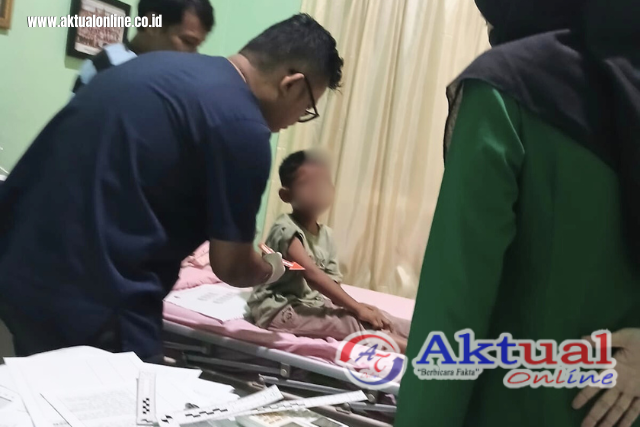 FZ anak 6 Tahun saat akan menjalani perawatan medis usai tangan kanannya retak akibat lemparan besi OTK dirumah Advokat Acil Lubis 15 Februari 2026 kemarin.(Foto: Ist/Aktual Online)