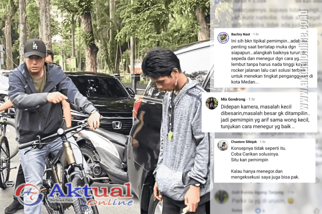 Akun Bachri Nast berkomentar “Ini sih bkn tipikal pemimpin…adab itu penting saat bertatap muka dgn siapapun…alangkah baiknya turun dr sepeda dan menegur dgn cara yg lembut tanpa harus nada tinggi kayak rocker jalanan lalu cari solusi terbaik untuk menekan tingkat pengangguran di kota Medan”.