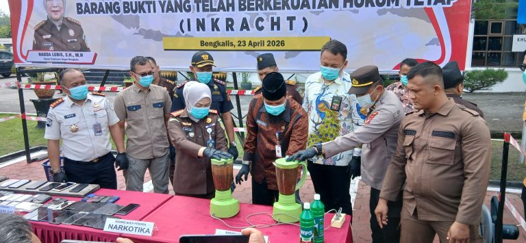 AKTUALONLINE.co.id – BENGKALIS ||| Kejaksaan Negeri Bengkalis melaksanakan pemusnahan barang rampasan negara sebagai wujud eksekusi putusan pengadilan yang telah berkekuatan hukum tetap (incracht) dihalaman kantor Kejari Bengkalis. (23/04/2026) pagi.